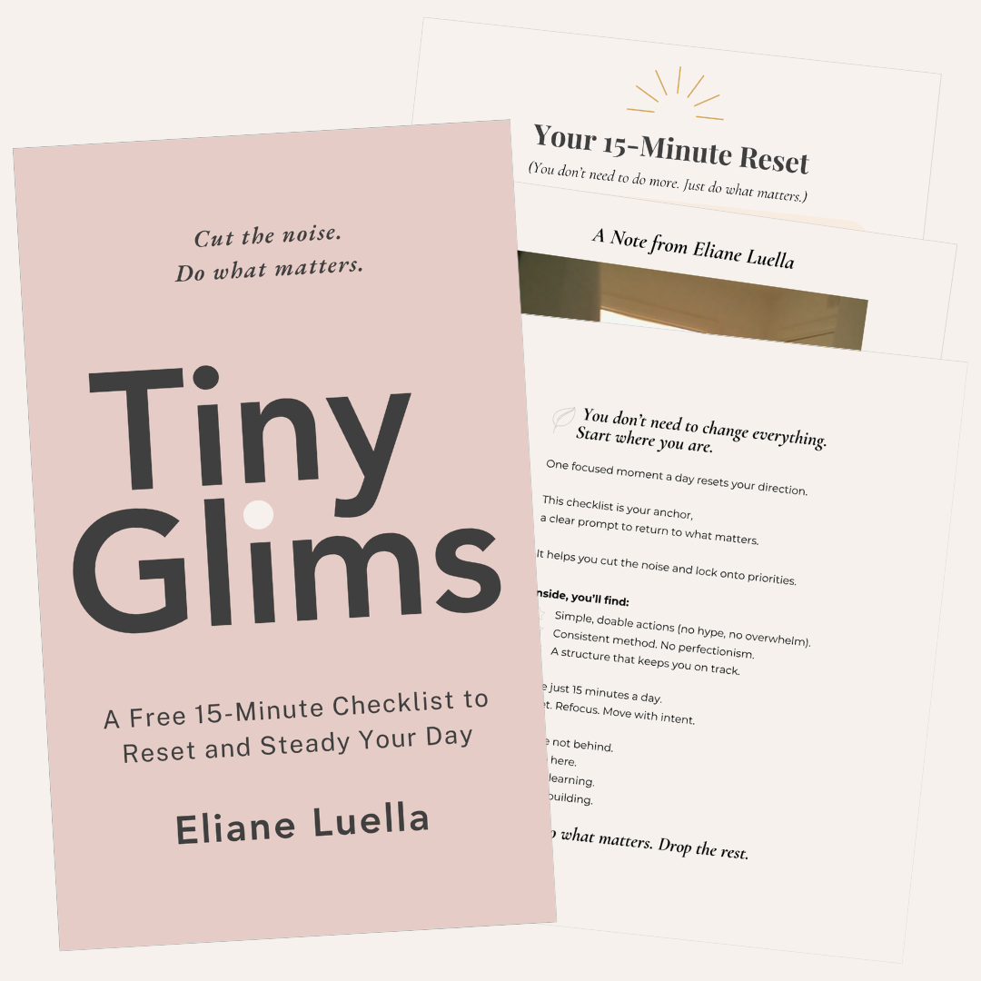 Download Tiny Glims.Get the free 15-minute reset checklist to help you clear your head and get back on track.